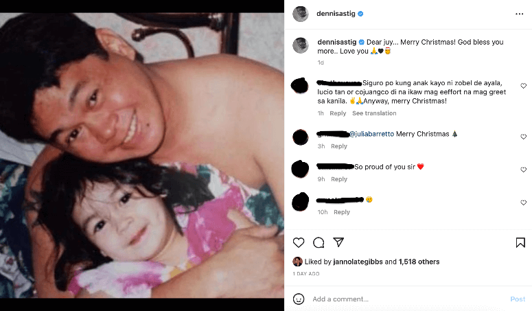 It seems that Christmas is a time for peace and harmony for actor and comedian Dennis Padilla, as shown when he sent his estranged daughter Julia Barretto lots of love and well wishes this holiday season amid the rift between them.