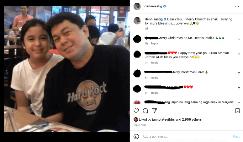 "Dear Claui, Merry Christmas, anak. Praying for more blessings. Love you," he said in an IG post.