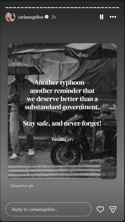 Carla Abellana and Kira Balinger didn't make any statements but shared Instagram posts in their stories demanding accountability from the government.