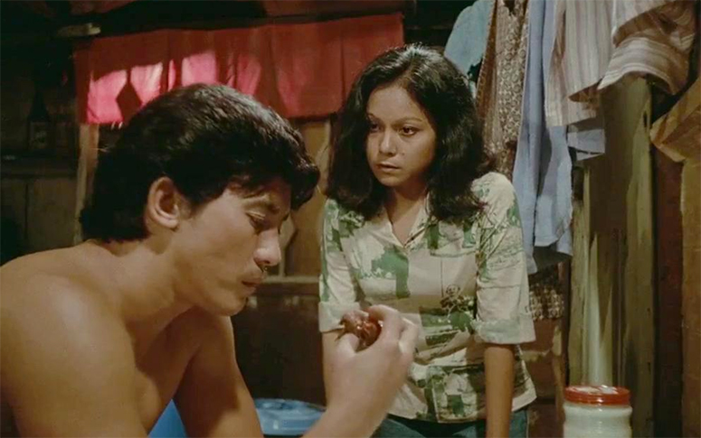 Himala (1982, directed by National Artist Ishmael Bernal), considered as one of the most important films in Philippine cinema. As Elsa, Nora was a young faith healer from drought-stricken Cupang and the aridness of the setting could actually be felt in her terse dialog heavy in emotion. The suffering among the people in Cupang was condensed in her eyes—all because Ate Guy, her moniker, brilliantly captured raw emotions in her eyes. Even temporary joy, or a make-believe miracle, was translucently present in her gaze that was innocent and deceptive at once.