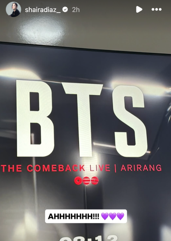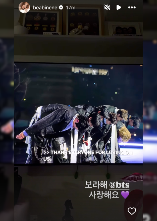 Golden Scenery of Tomorrow star also tuned in to the livestream. In her Instagram Story, she wrote in hangeul, "I purple you, BTS, I love you."