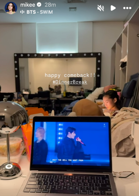 While busy with work, Encantandia Chronicles: Sang'gre star Mikee Quintos made sure to watch the concert during her dinner break. In her separate Instagram Stories, she reposted her sister’s video, in which her sister fangirled at home using her ARMY Bomb lightstick.