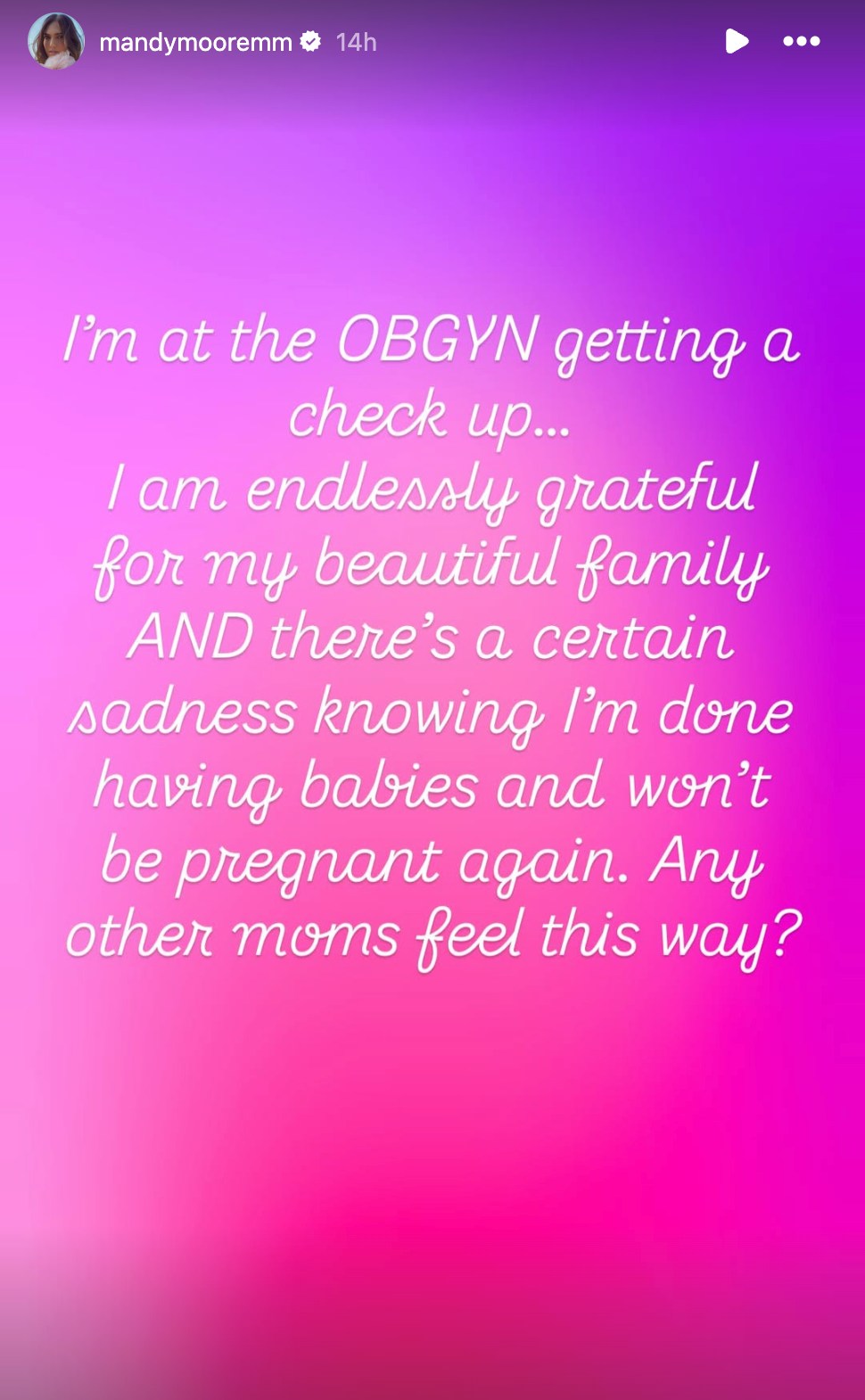 Mandy Moore shared a moment of reflection, admitting it was difficult to accept that her journey with childbearing has come to an end.