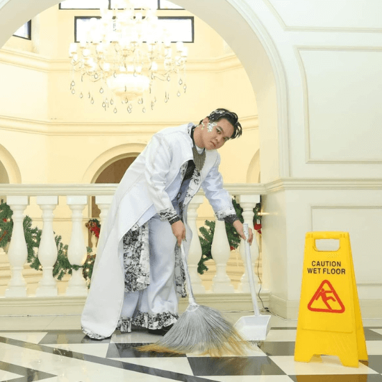 Also known for hilarious, entertaining content is creator Spencer Serafica. He drew laughs when he arrived at the affair in an all-white outfit, complete with a broom and a dustpan referencing his TikTok content.