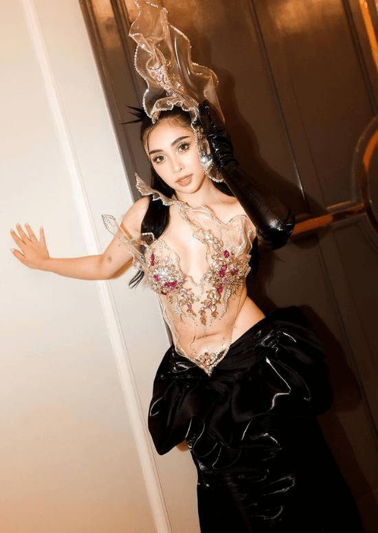 Drag queen Eva Le Queen from the first season of Drag Race Philippines stunned in her fiery red hair and bedazzled corset, which she matched with a black faux fur shawl and maxi skirt. She has almost 30,000 followers on TikTok.