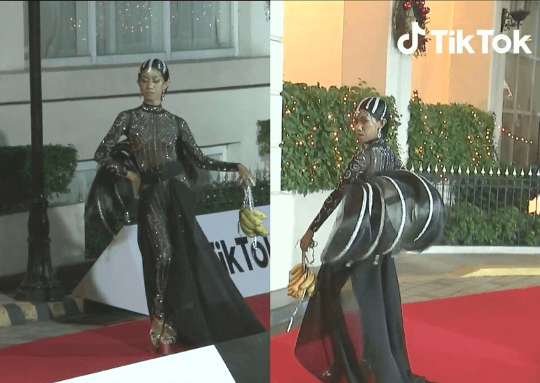 Another TikTok star who took the spotlight was Joyce Glorioso of Joyang TV, who is known for her funny skits and parodies. Staying true to her branding, she brought with her a bunch of bananas to complement her ensemble with what looks like the same shape of the fruit behind it.