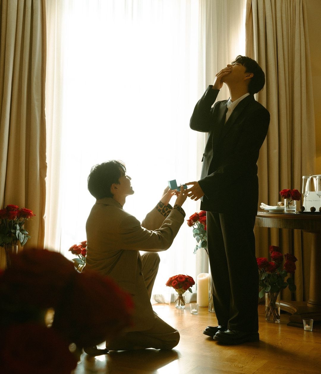 "Will you marry me?" Both got down on one knee and asked Newyear. To which, Newyear replied, "I said 'yes' from the first day we met."