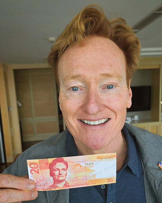 "A fan is distributing these bills in the Philippines. He's being arrested as we speak," O'Brien joked.