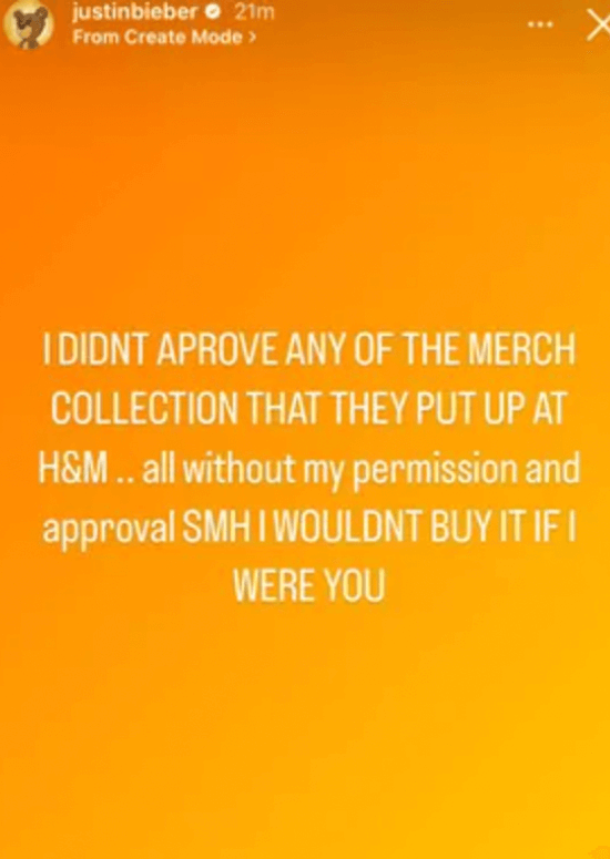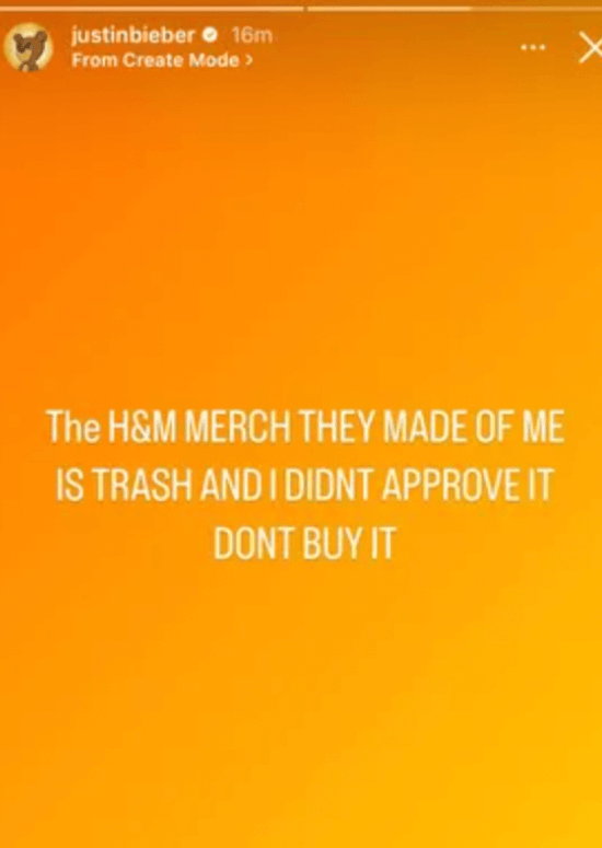 In his second Instagram story, he called H&M’s Bieber collection "trash" and once again advised his fans, "Don't buy it."