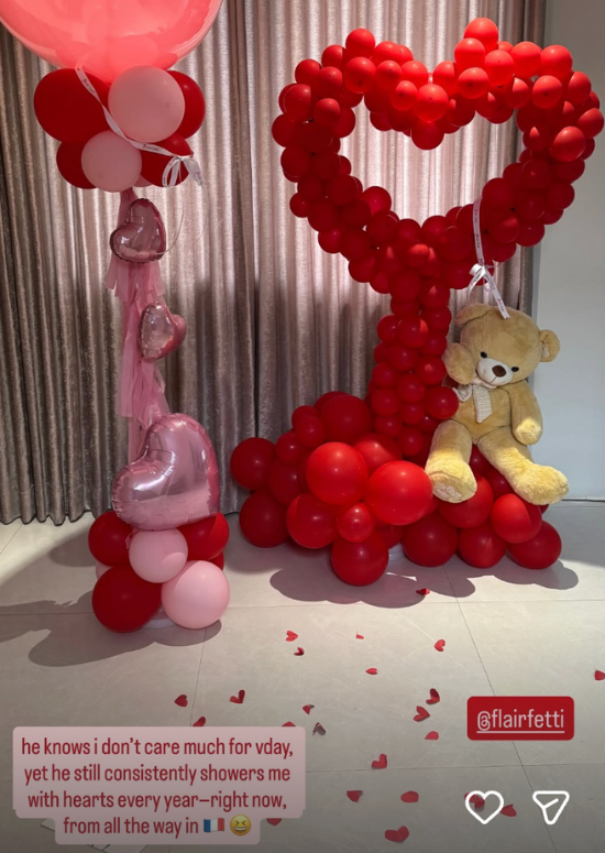 "He knows I don't care much for [Valentine's Day] yet he still consistently showers me with hearts every year—right now, from all the way in [France]," Coleen wrote in her Instagram story.