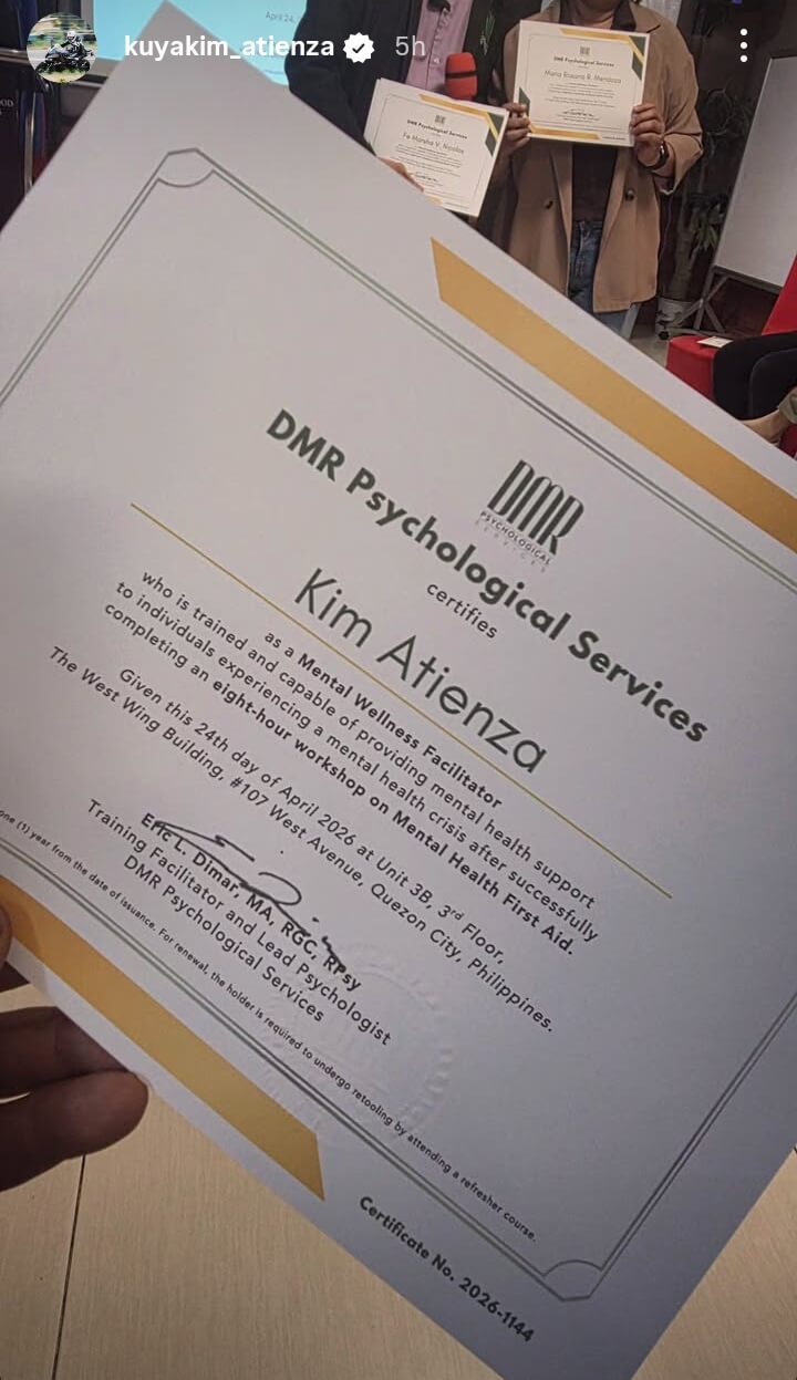 Kim Atienza is now a certified mental wellness facilitator