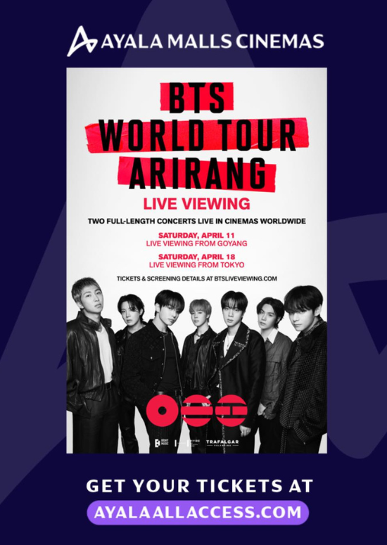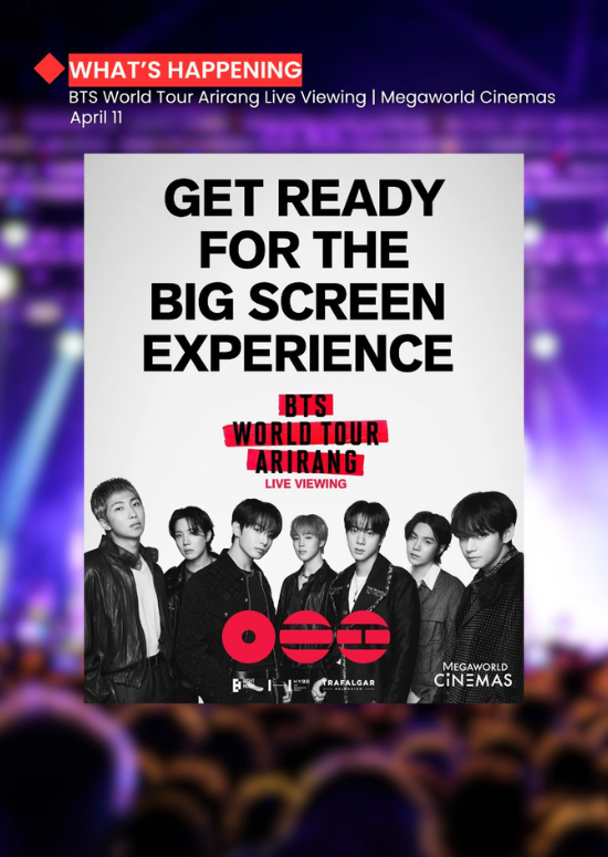 SM Cinemas will host "Arirang" live viewing across 38 SM branches nationwide this coming Saturday, April 18.