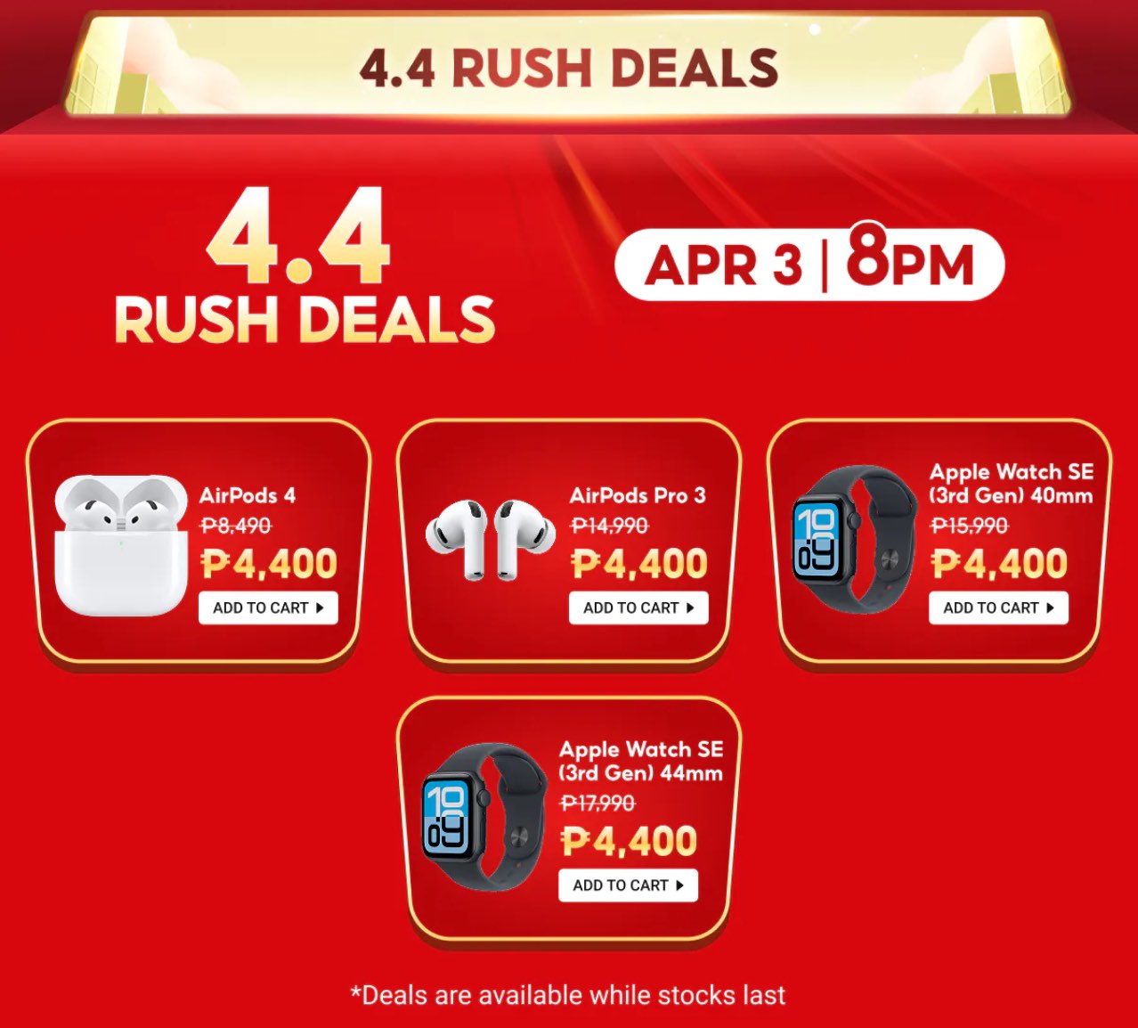Want new Apple items? Today, April 3, you can score some products from the tech giant for as low as P4,400 ahead of the 4.4 sale.