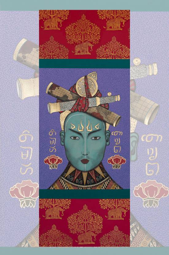 In the book, he writes, “I have always worked on paper, with water-based paints, and on a flat drawing table. Imagine, if you will, that I might be more closely compared to a medieval scribe quietly creating an illuminated manuscript rather than a manic painter assaulting a large canvas with a dripping paintbrush. My work area does not occupy a lot of space, and because of this mobility I have been able to move around and create these paintings in many different habitations.”