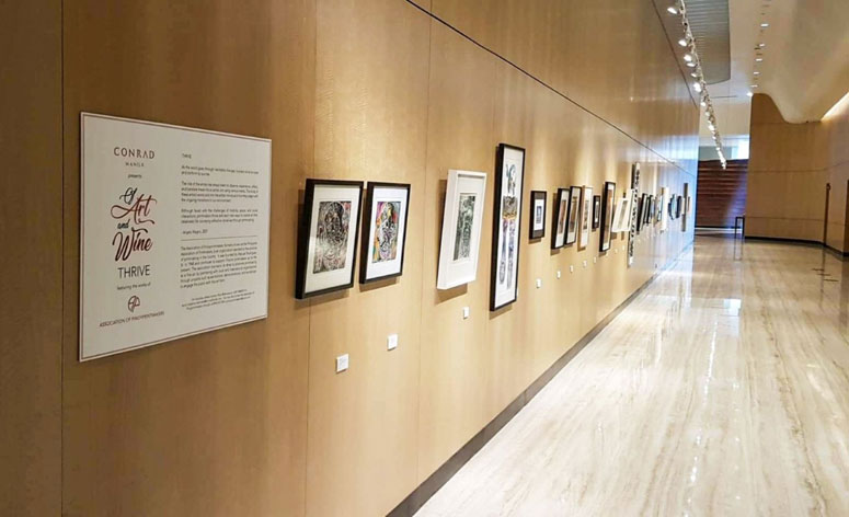 Just in time, Conrad Manila continues its accessible focus on local artistry with this year’s “Of Art Wine” exhibit, called “Thrive,” now displayed along its Gallery C corridor. Thirty-four works by local printmakers are shown (all are for sale) in an art stroll that highlights this sometimes misunderstood art discipline.