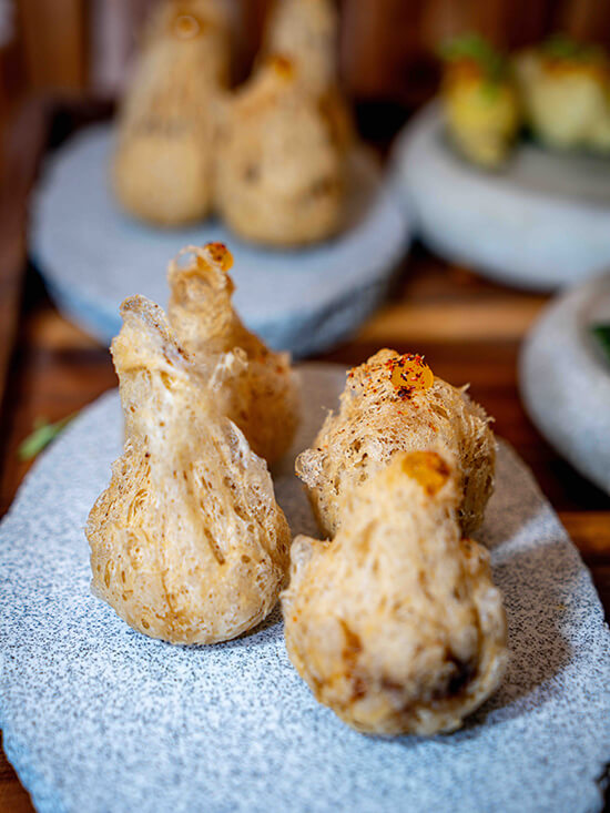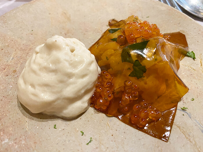 Toward that end, we sat in Gallery’s intimate dining room for a perfectly curated meal starting with familiar-yet-reimagined Filipino appetizers: longganisa puffs, pintos, kare-kare bon bons and a tomato sinigang. “Authentic Sound” flavors went pow, as we watched a video outlining a century of Danish innovation, each course highlighted by a decade-hopping musical playlist.