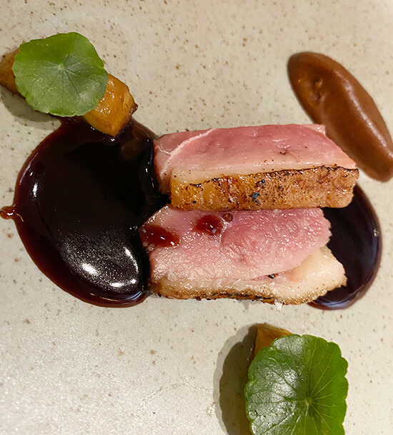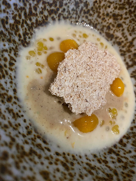 We enjoyed a final course of Impeccable Craftsmanship: Chef Gonzalez’s Duck Roselle, with dabs of banana, aminos sauce and hibiscus, followed by a succulent Wagyu A5 sided with a century egg emulsion, black garlic and delicate strips of onion, plus a Chele “comfort food” favorite: a bowl of delicious steak fried rice to tuck into.