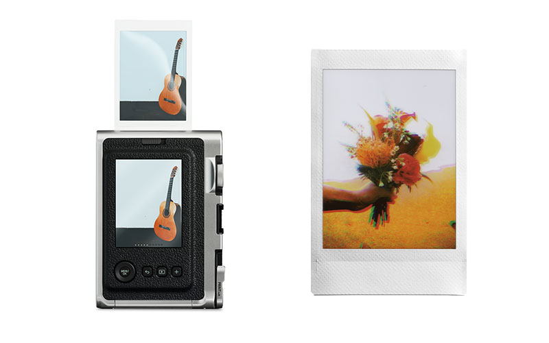 The device's body evokes a retro feel—it sports a classic design with a sense of luxury with its silver-coated buttons and dials. It's the first Instax to have a print lever, a lens dial, and a film dial for an analog-like operation.