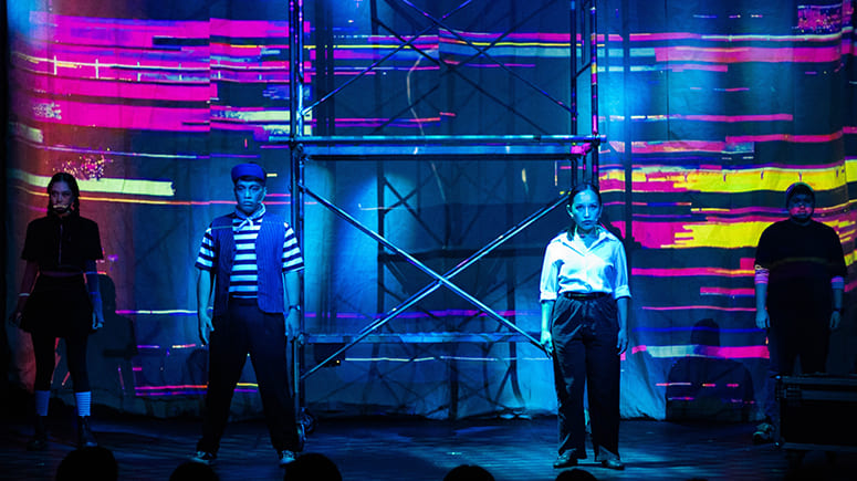 Director Johnnie Moran simulated the frenzied scrolling through social media with fast-paced segues between the feeds of TikTok content creators Yani (Nyla Festejo), a corporate executive and lifestyle connoisseur; Jen (Frances Marie Akol) a student covering art, beauty and food; Owen (James Pe Lim), the alpha male gamer who seizes opportunities no matter what; and Mark (Otep Madriaga), a provincial fast food server struggling with urban realities. The use of a spare metal scaffolding on wheels cleverly frames the characters as they alternate on the rig, which turns in different configurations as perspectives change.