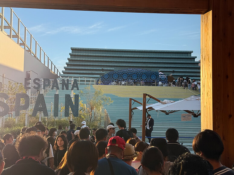 The Spanish pavilion exhibited three key concepts. First, the maritime connection—the Manila Galleon or “tornaviaje,” which was the historical trade route. Second, the sun and the ocean—the sun symbolized the meeting of East (Japan) and West (Spain), with the ocean as the unifying resource leading to important discussions on the Blue Economy, sustainability, and marine biodiversity. Third, sustainability and circularity, reflected in the pavilion’s architecture, pertained to Spain’s commitment to circular economic practices.