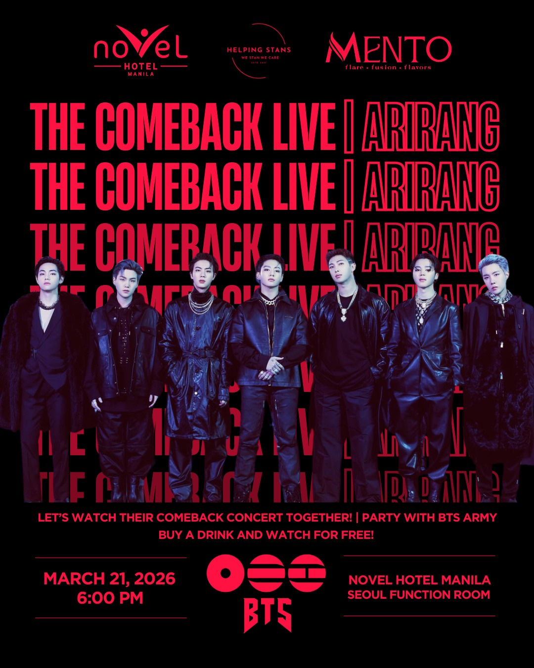 While we count down to their two-night Manila show in March 2027, fans can show their love for OT7 by joining watch parties and fan events happening across the metro this weekend.