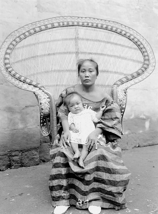 Their vision could not be more romanticized enough than in a 1914 photo of a Bilibid inmate seated on the chair with her child, in an almost formal portrait pose like a Raphael Madonna, except that this subject wore the striped prison uniform and was incarcerated for life for killing her husband, reported the El Paso Herald with the headline “Jail Bird in a Peacock Chair.”