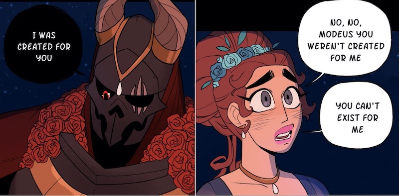 This comic makes a point of not using a significant other as a lifeline. Unlike most romance stories, Suitor Armor tells the reality of how being the main reason for someone’s existence might be a very emotionally risky thing to do. Purpah shows with a lot of delicateness how two people should be their own people and not be codependent to have a stable and healthy relationship.