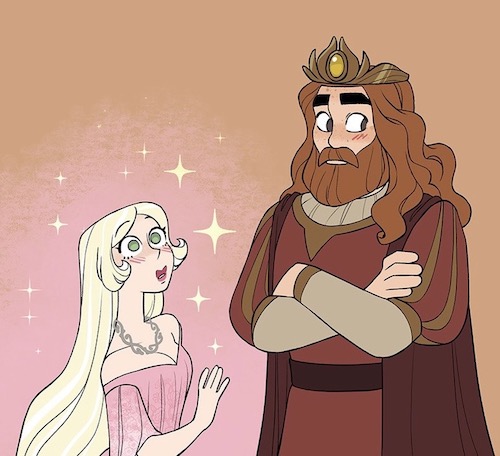 This comic showcases romantic relationships in an equitable and healthy manner, one being King Reimund and Lady Kirsi having a respectful partnership. Kirsi and Reimund have been arranged to be married since they were born, and the webtoon’s plot point is focused on their upcoming wedding.