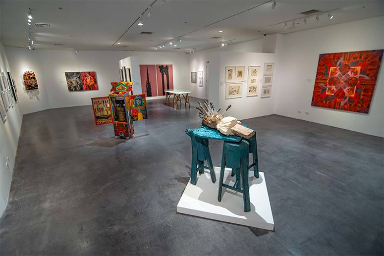 He is a painter, sculptor, editorial illustrator, graphic designer, action/performance artist, writer and occasional curator. He has had more than 30 solo shows and over 200 exhibitions in various cities. He represented the Philippines when it made a comeback to the 2015 Vienna Biennale with a fabulous mixed media installation titled Shoal.