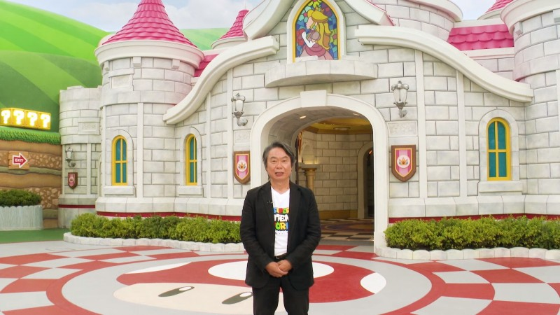 The 15-minute Nintendo Direct presentation sees Miyamoto walking us through some of the attractions in the soon-to-open theme park. Guests enter through a life-sized green warp pipe and emerge at the lobby of Princess Peach's Castle where background music from Super Mario 64 automatically plays.