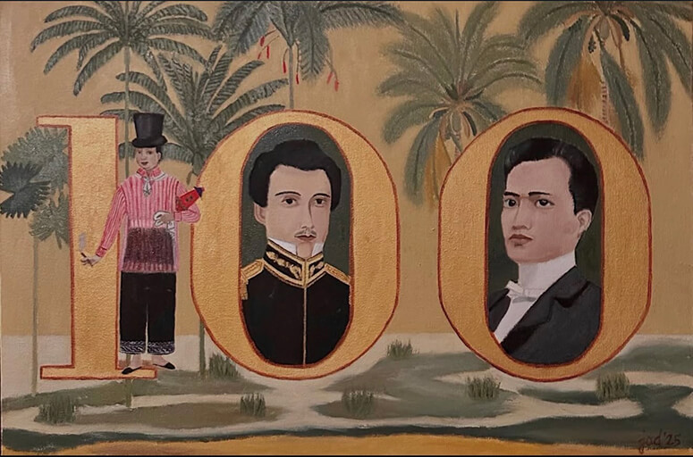 It’s a world viewed through many lenses—just as our shared Chinese and Filipino heritage creates a wonderful mille-feuille pastry of many delicate layers. There are women smothered in lace, withstanding the heat of a summer’s day with a fan; young Turks in crisp, white linen suits; a chino chanchaulero, hawking black grass jelly; Rizal in a French fencing costume, épée sword in hand, ablaze in front of a Philippine flag.