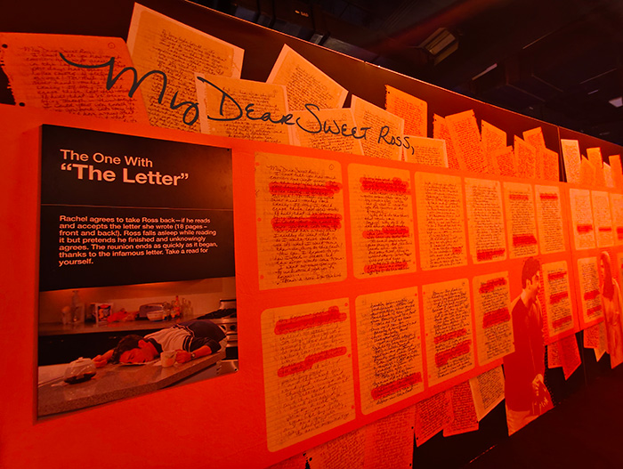 Ever wondered what Rachel wrote in her 18-page letter to Ross in The One with the Jellyfish episode—which he fell asleep reading? While the letter was never shown in full on TV, all 18 scribbled pages (FRONT AND BACK!) have been blown up and are on display here.