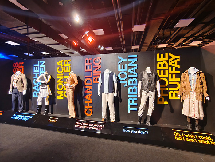 Another display focuses on costumes. Mannequins reflect the characters’ distinct looks, from Rachel’s chic outfits to Monica’s classic pieces, Ross’s preppy work attire, Joey’s actor ensemble, Chandler’s sweater vests, and Phoebe’s boho-chic style.