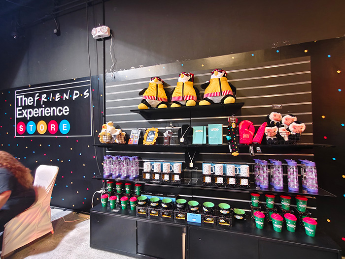 After exiting, you get an exterior view of Central Perk and can make a beeline to the gift shop, which has loads of Friends-related merch for sale, such as shirts, sweaters, sweatpants, umbrellas, and more exclusively available here.