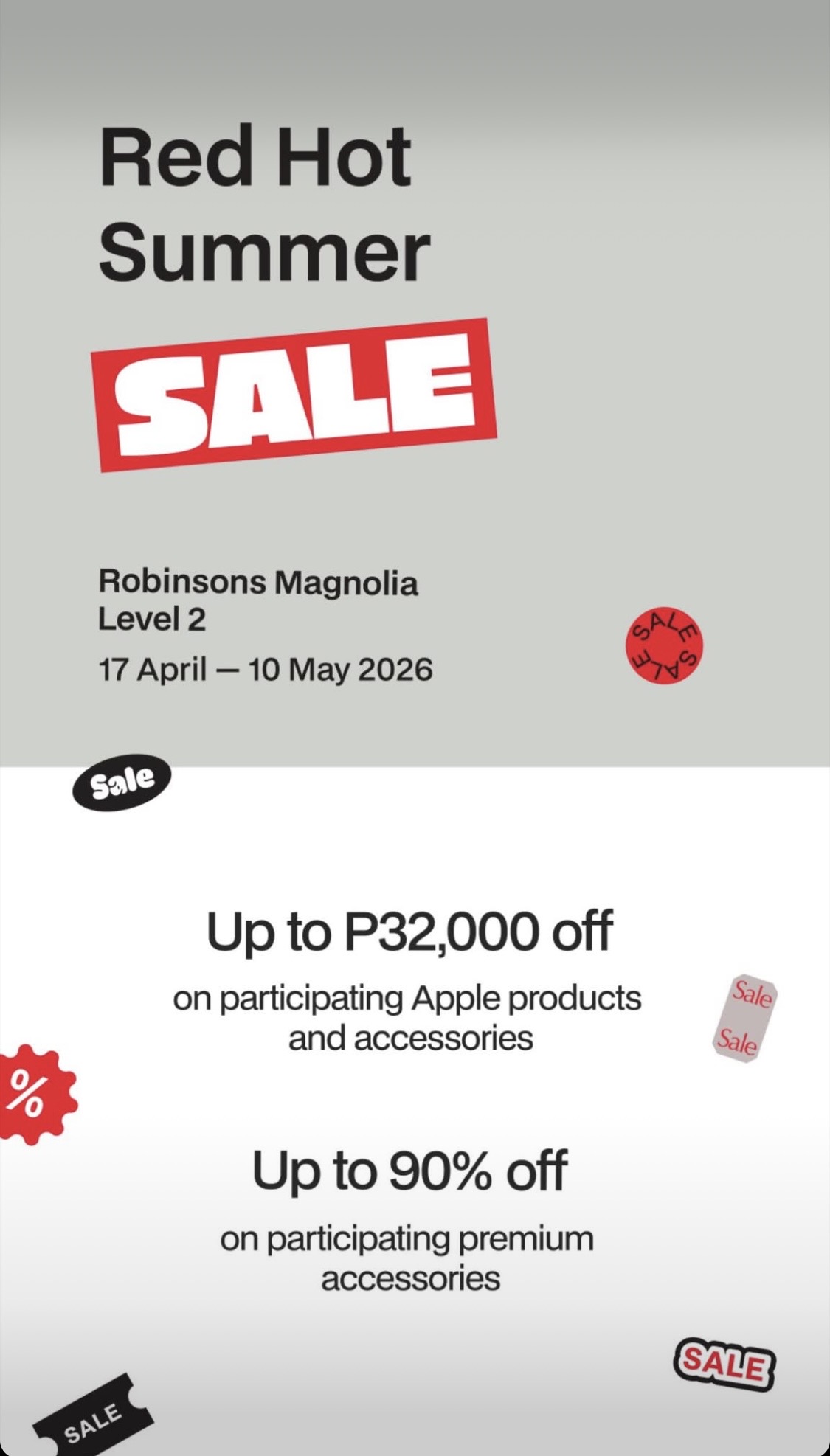 In case you missed it: Power Mac Center has an ongoing "Red Hot Summer Sale" at its branch in Robinsons Magnolia, running until May 10.