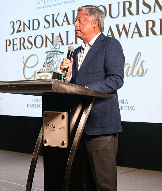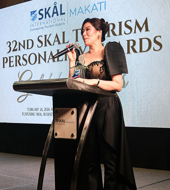 The other SKAL awardees include Tourism Promotions Board COO Marga Nograles (Best Government Institution), Crystal Jacinto of Villa Medica (Best Health and Wellness Tourism), Kyle “Kulas” Jennerman (Social Media Tourism Content), Lance Tan (Best Amusement and Entertainment Entity), and Seferina Joven (Tour Operator of the year).