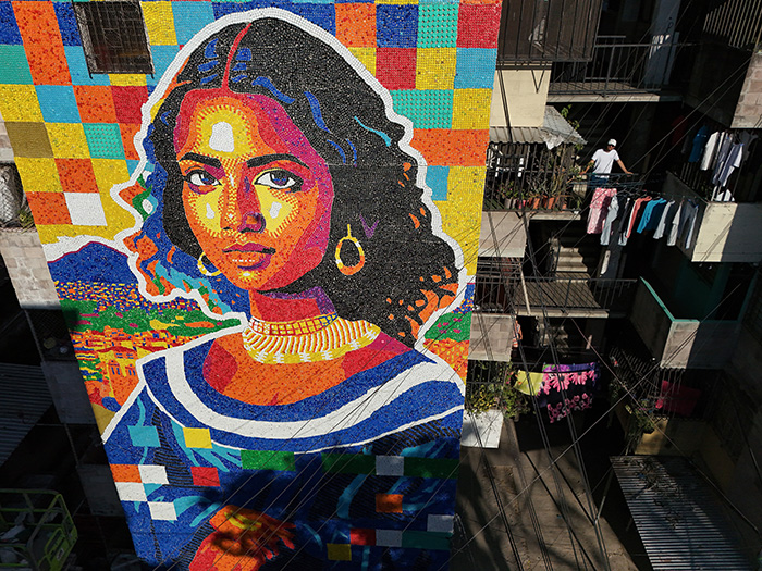 Olivares has created murals using plastic caps in Venezuela, Mexico, Saudi Arabia, France and Italy, finding use for over 2 million caps in more than two dozen murals.