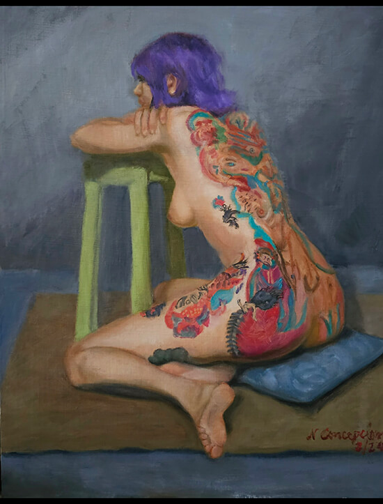 “L’Arc en Ciel has supported many artists since the late 1990s. I have curated many shows since then. In our upcoming show, I have included fresh young artists I discovered who had enrolled in classical realism at L’Arc en Ciel. One of them, Rommel Tingzon, is an FEU scholar from Palawan. I’m proud to present them in ‘Carpe Diem II.’”