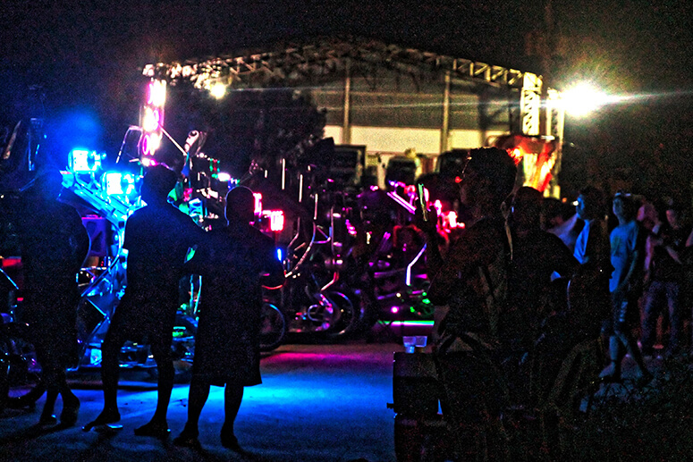 The host counted down—“Ready… bomba!”—and the competitors blasted two different tracks at once. I assumed the contrasting tempos and harmonies were intentional, helping listeners distinguish which sound came from which trike. What followed was an earsplitting barrage of sounds, crashing into the senses like thunderclaps. The effect was visceral, as if one’s entire body was being struck by a sledgehammer. At the height of each battle, modders stood behind their mixing decks, pushing faders and buttons to isolate their opponent’s most powerful frequencies.. Within minutes, both systems were pushed to their limits. As the night wore on, we even saw a few rigs break down mid-duel.
