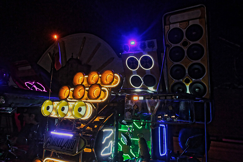For some, modding trikes was more than an expensive hobby. Kuya Arnold, for example, had been working on his project since 2021. Many of them joined sounds competitions. Like Formula 1 équipes, modders organized themselves into teams, each with specialists handling engineering, electricals, and lighting. These trikes are never used for pasada or public transport, though some were hired out (“arkila”) as sound systems for private events.