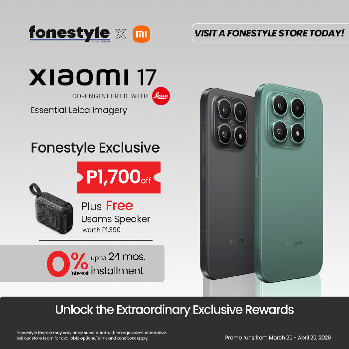 Meanwhile, for the Xiaomi 17, those who purchase the 12GB+512GB model can score up to P1,700 off on their purchase and a free true wireless stereo earbuds or speaker. This launch offer is available from March 20 to April 20, with flexible payment options for up to 24 months' installment with 0% interest. Those who don't have credit cards may also opt for Home Credit and GGives for adjustable terms.