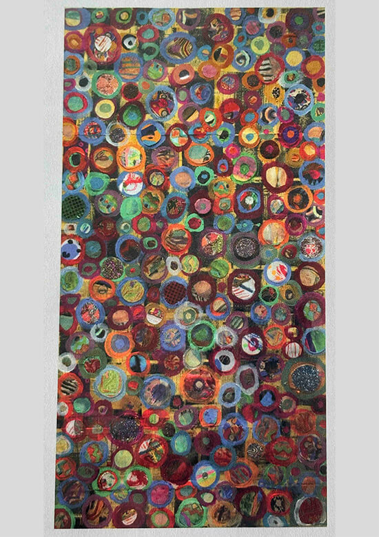 We pause before a piece by longtime friend Pacita Abad. “Rolling Stones,” completed the year of her death from cancer for an upcoming show at CCP, was worked on by Abad while lying in bed, undergoing chemo treatment in 2004. It reflects on the artist’s witnessing refugee migrations in Bangladesh and Thailand.