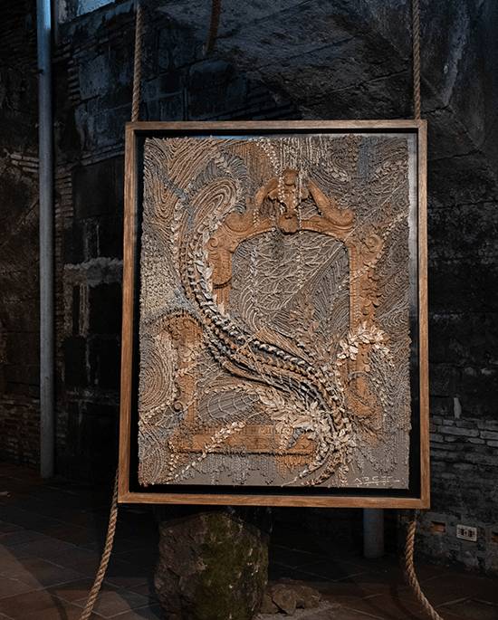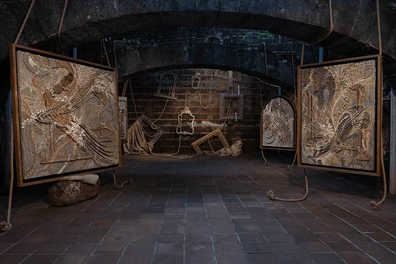 Large-scale, with colors meant to resonate with the earth tones of the famed walls surrounding them, and dazzling in their intricacy, the works thoughtfully consider the architectural context of this so-called “city within the city.” This approach, to use art terminology, was meant to be “site-specific,” but for Arce, the exhibition “Roped: The Reflection of the Past, The Enlightenment of Our Destiny” was really a communion with the past with its rich, fevered history, and how its strands reach deeply into the present and the psyche the Filipinos.