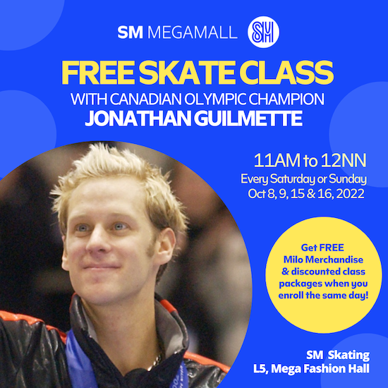 Organized by Philippine Skating Union, SM Skating invites you to join the Free Skate Classes this October and get the chance to be coached by three-time Canadian Olympic Champion Jonathan Guilmette.