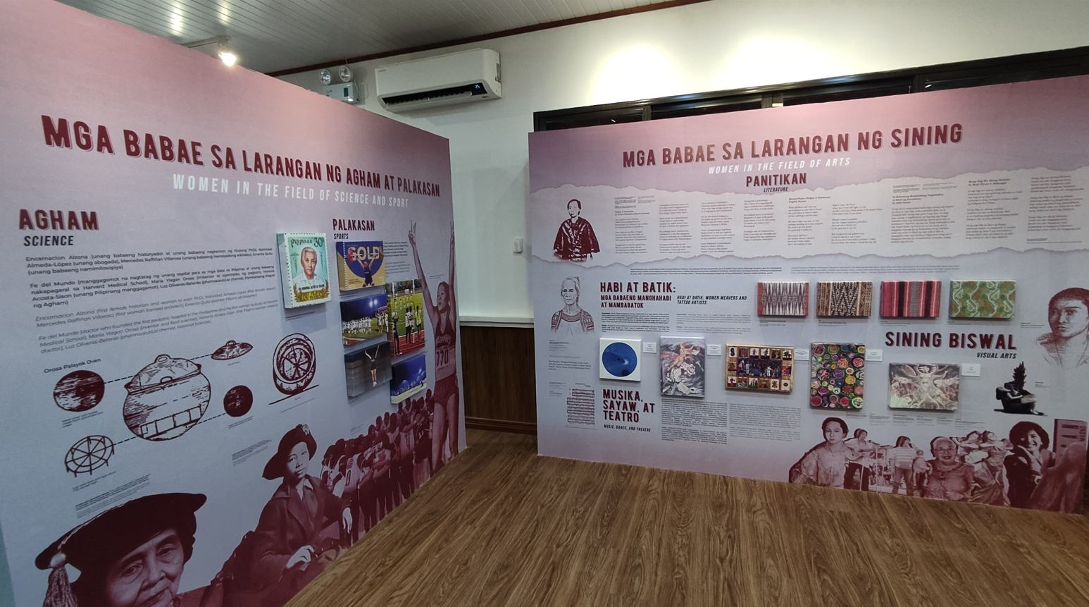 Meanwhile, this section highlights a gallery that showcases some materials from feminist movements, including the Pis Syabit, a traditional cloth tapestry worn as a head covering by the Tausug of Jolo, Sulu.