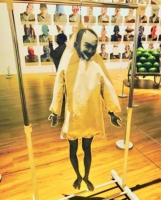 There’s much more, of course: a room devoted to large installations “Pressure and Pleasure” and “Passion Play” — reflections on the 1998 May Riots and the inculcation of militant violence into the vocabulary of daily life, on the one hand, and a sly take on the Indonesian art boom up to 2009, with figures behind prison bars representing Suwage’s dealers, curators and collectors. There’s so much here that speaks of the artist’s life, and the changes of Indonesian life post-Suharto, that one could linger for hours. And it all seems presciently right on time: in the selfie-centered existence we all dwell in, Suwage’s endlessly reinventive, whimsical, deadly on-point self-takes represent a possible future for personal/political/cultural expression: funny, scary, shocking — perhaps the best that Indonesian art has to offer.