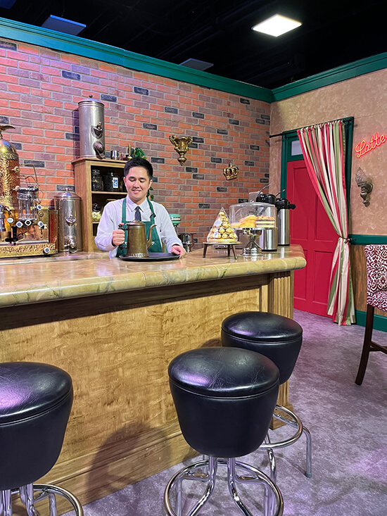 So many great photo spots at Central Perk as well. Hang out at the gang’s favorite hangout. Grab a cup and pose on the famous orange couch or the many other seats. Go behind the bar, put on an apron and pretend to be Gunther as you serve some coffee. Recreate your favorite scenes.