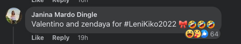 On Facebook, Robredo's voters commented #LetLeniWearValentino and left GIFs of the VP.