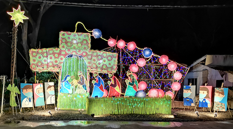 Moncada town’s belens have always been grand and something to look forward to each year. For this edition, its belen carries the theme “The Savior Has Come, We Heal As One” to convey a message of shared responsibility to heal as one town or one nation. Made of G.I. sheet roofing materials, it pays tribute to the heroic frontliners in this time of pandemic. An angel with spread-out wings (made from painted metal sheets) hovers above the holy family.