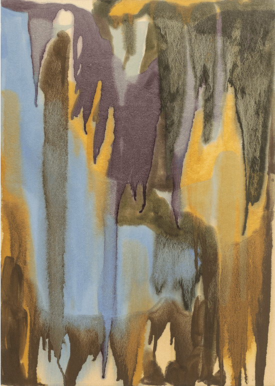 The show’s title, its reference to a certain fidelity of seeing things, soon takes on an uncanny tone. With these landscapes, objects and events are always on the verge of shapeshifting into something else entirely, unfixed and out of place, like tapestries perpetually being done and undone.